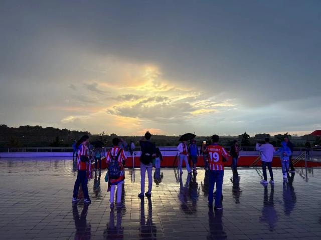 皇马主场战胜斯图加特后,本轮欧冠马德里再次迎来一支德甲球队,马竞主场迎战莱比锡RB。结果这一天迎接远道而来的莱比锡球迷的是凄风冷雨,足足2个多月几乎没有下过一滴雨的马德里,这天下午起突然暴雨倾盆,不仅道路交通拥堵不堪,连距离马竞主场最近的一条地铁线路都因为线路故障被迫暂时停运,以至于比赛即将开始时,大都会球场的主看台还空着不少位置,客队看台更是只有稀稀拉拉的几名球迷。不过,恶劣的天气倒也没有阻挡马竞球迷们的热情,死忠看台从比赛第一分钟起就将氛围推向高潮。