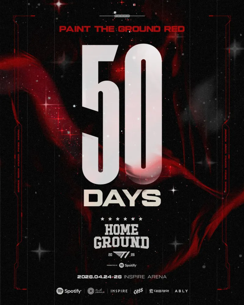 虎扑03月05日讯 今日T1发布主场倒计时50天海报,配文如下: