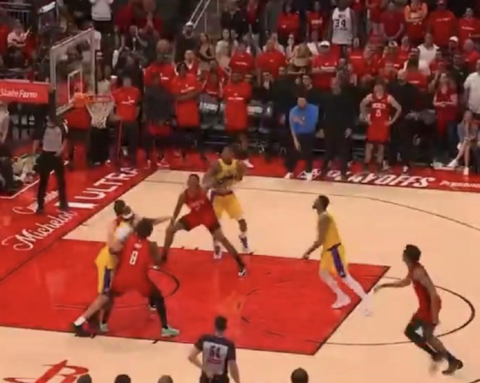 末节25.5秒,斯马特造三分犯规走上罚球线,第三罚斯玛特在球碰筐之前提前进线,应吹罚罚球违例;若吹罚正确,火箭的比分优势应维护在4分而非实际三分,随后詹姆斯完成外线三分把比分带入了加时。